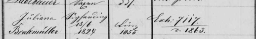 Seine Ehefrau Juliana starb 4 Jahre nach ihm am 7.3.1887 mit 61 Jahren an Altersschwäche.