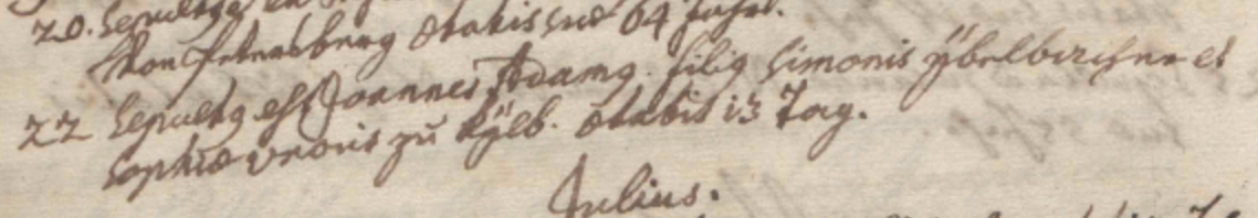 „Sepultus est Johannes Adamus, filius Simonis Übelbacher et Sophia uxoris zu Kylb. Aetatis 13 Tage“
