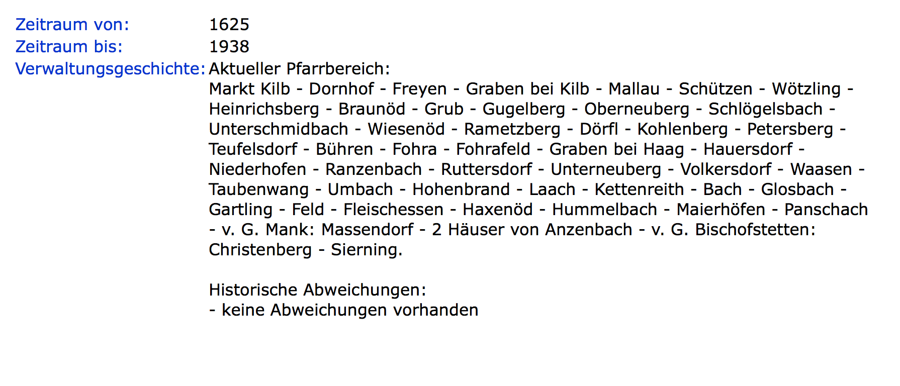 Gerade bei Orten ist es manchmal schwierig, den Namen zu entziffern. Auch hier konnte ich den Ort vorerst nicht lesen. Ein guter Tipp in diesem Zusammenhang ist, in Matricula die Beschreibung der Gemeinde zu lesen, die oft bei Pfarren enthalten ist, da die Taufpaten ja oft Nachbarn oder nahe wohnende Freunde der Eltern waren.