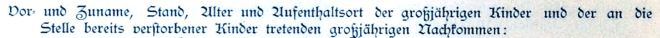 Danach folgt ein Abschnitt über großjährige oder minderjährige Nachkommen.